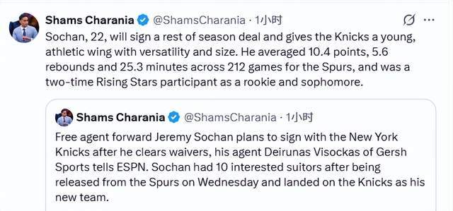北京時間2月13日,據名記Shams報道,杰里米-索漢計劃在度過澄清期后加盟紐約尼克斯。