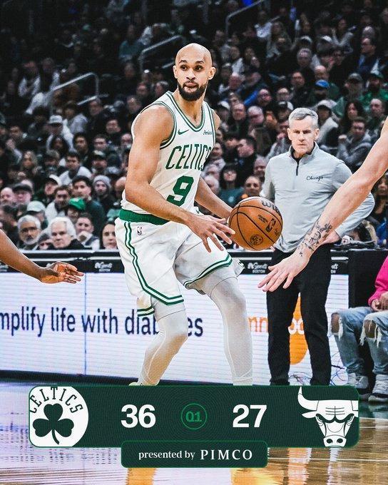 凱爾特人上一場主場89-111輸給尼克斯,公牛過去5場遭遇5連敗,本賽季前兩次交鋒雙方各取一勝。本場凱爾特人缺少塔圖姆,公牛缺少吉迪、奧科羅、科林斯。首節(jié)前半段雙方交替領先,纏斗至凱爾特人17-18落后,凱爾特人連得5分反超。公牛也連得5分,布朗與普里查德持續(xù)得分率隊反超比分,布朗7中4得到12分與普里查德5中4得到10分,兩人均是外線命中2記三分,首節(jié)結束凱爾特人36-27領先公牛。首節(jié)公牛20中10,其中三分8中5;凱爾特人25中14,其中三分11中6。