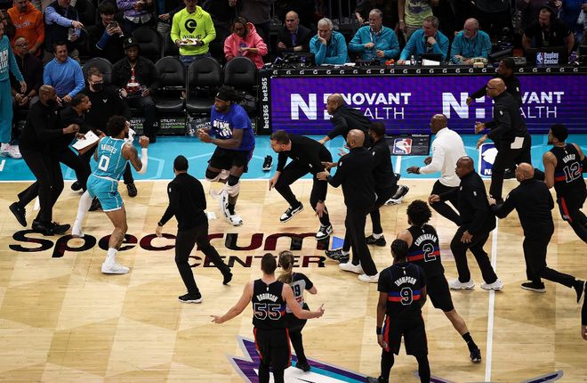 在該場比賽進行到第三節時,雙方爆發大規模沖突。先是杜倫與迪亞巴特兩位內線發生肢體沖突,其中杜倫掌摑迪亞巴特的面部,他追著杜倫要打引發沖突。隨后斯圖爾特與布里奇斯加入進來,尤其是斯圖爾特隨后再次沖進場內追打布里奇斯,也是引發雙方第二輪的沖突,而迪亞巴特隨后被工作人員拉走,四位球員當時全部被驅逐離場。